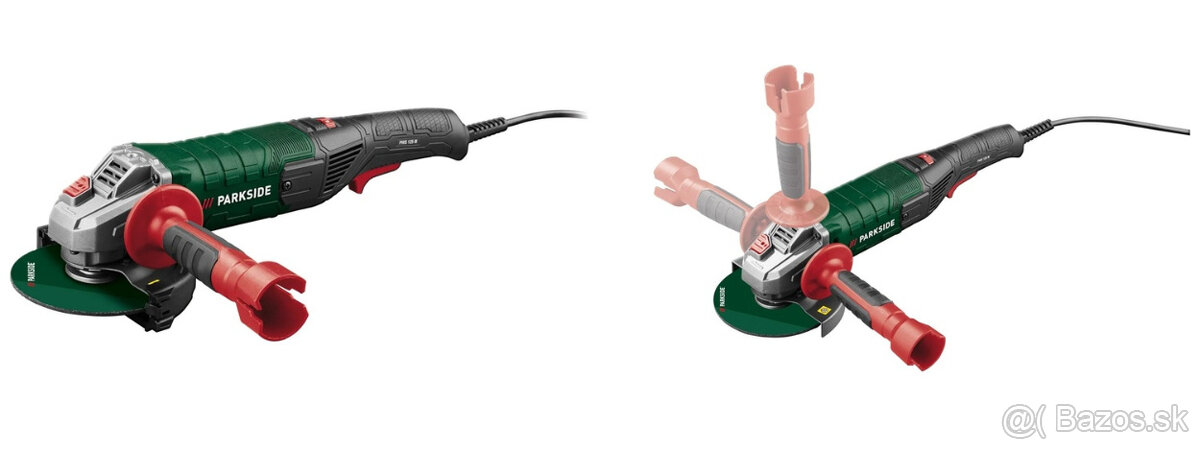 - Dodané príslušenstvo: 1 rezací kotúč na kov Ø 125 mm, 1 upínací kľúč, 1 súprava náhradných uhlíkových kefiek