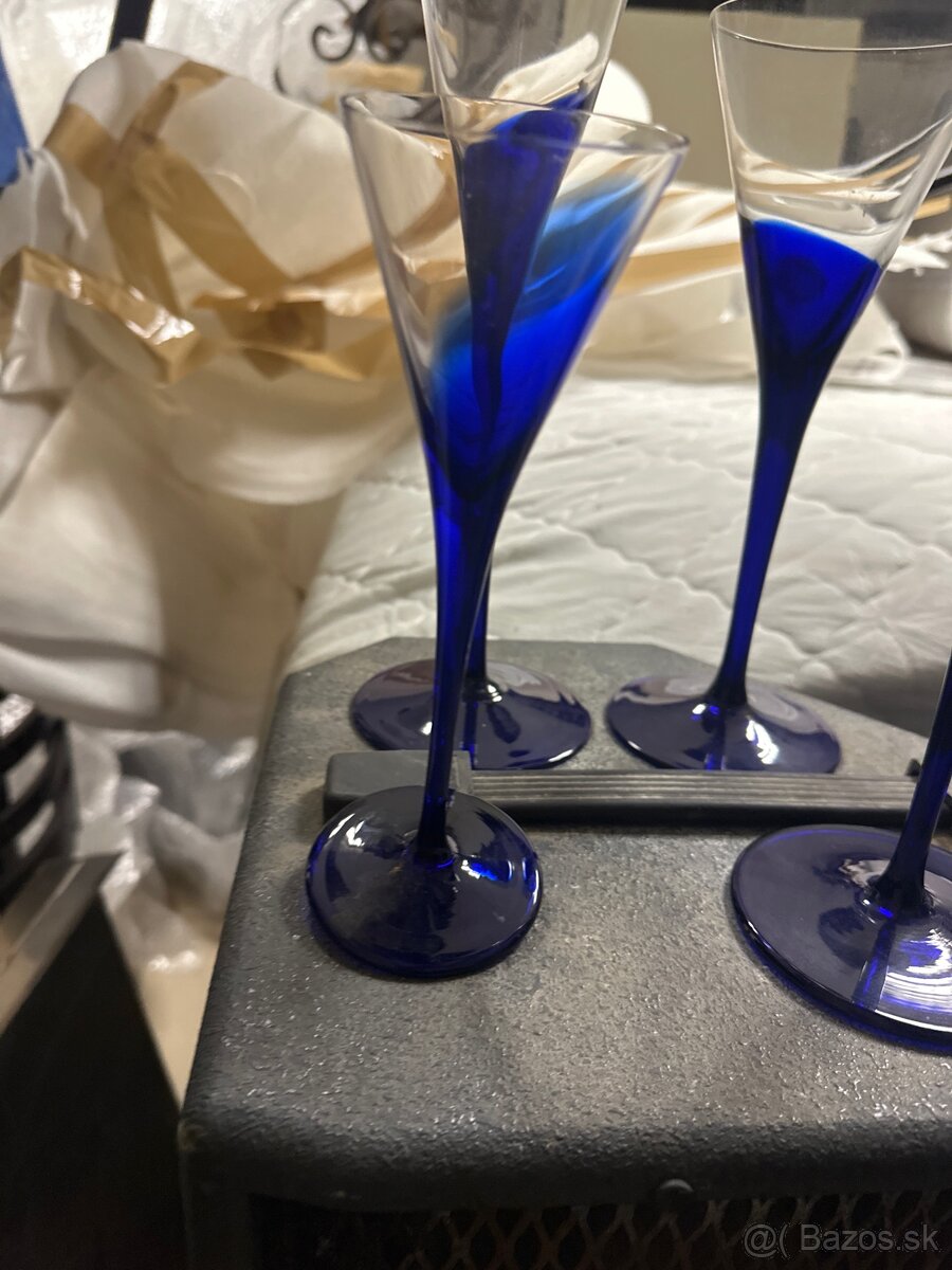 Predám dekoratívne modré poháre, vhodné na šampanské alebo ako dizajnový doplnok.
