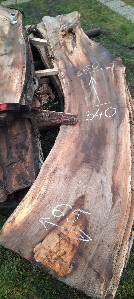 Predám orechové fošne, vzduchosuché, hrúbka 6 cm, dĺžka 340 cm, šírky do 70 cm