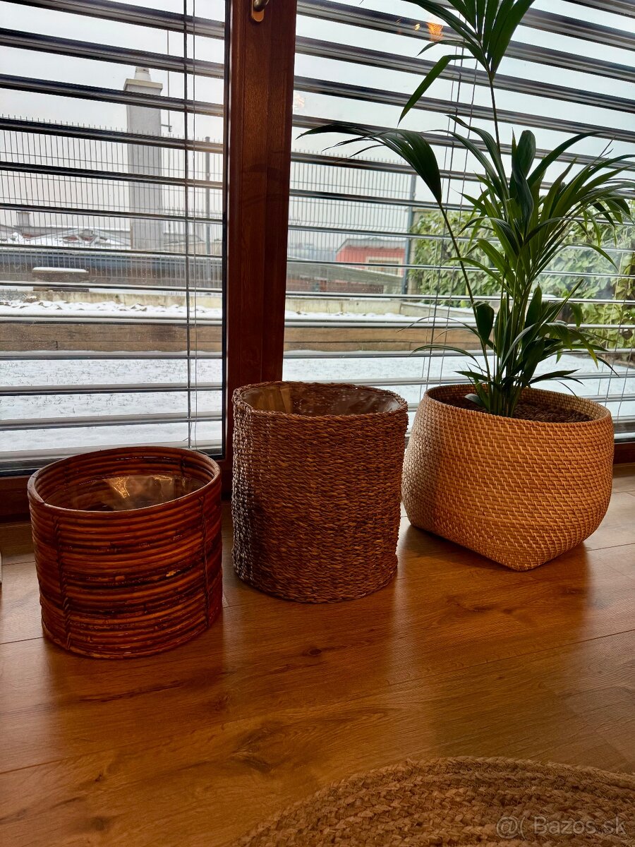 - ratanovy vysoky svetly kvetinac: priemer 36 cm, vyska 37cm, cena 15,- eur/ks (povodne stal 30,-)