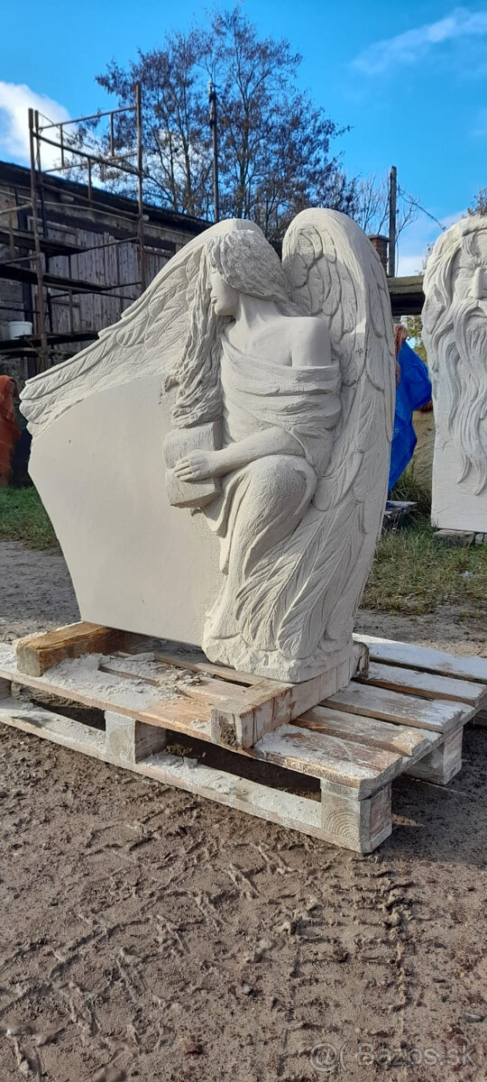 Náhrobok s anjelom z pieskovca. Prírodný sochársky kameň, pieskovec je tvrdý, jemnozrnný a rentgenovaný, vydrží niekoľko genercí - neobmedzene. Všetko robím na zákazku