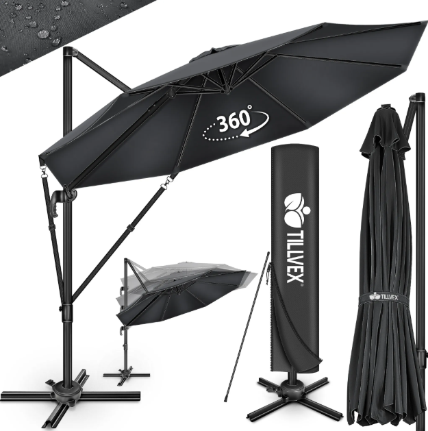 Predám úplne nový prémiový konzolový slnečník tillvex® – veľký, stabilný a maximálne nastaviteľný slnečník pre náročných, ideálny na záhradu, terasu alebo k bazénu.