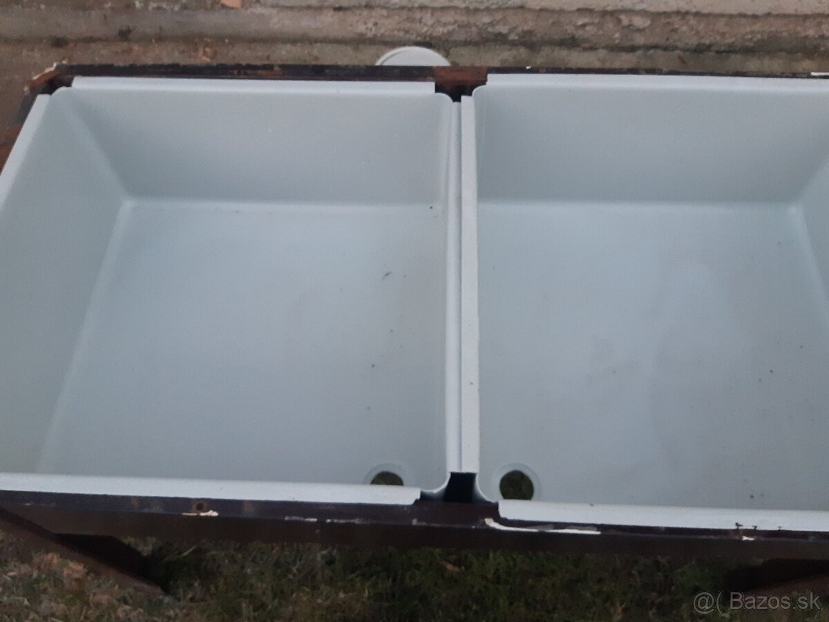Predám kuchynský dvojdrez. Používany, ale drezy sú po repase - opieskované a nastriekané práškovou farbou. Rozmer stola 130 x 67 x 80 cm. Rozmer drezu 58 x 58 cm. Viac info po tel. Cena 150 euro + dohoda.