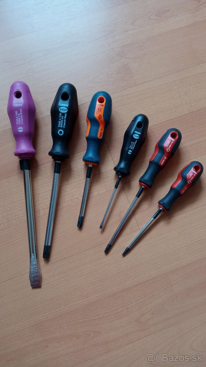 Predám Narex profi S line sada skrutkovačov 6-ks, nová, pôvodná cena bola 29,50 eur. Bezpečnostný TS10 S line profi, plochy 2x12x160mm, profi plochy 3x75mm, profi torx TX10 S line, profi torx TX25 S line, profi torx TX45.