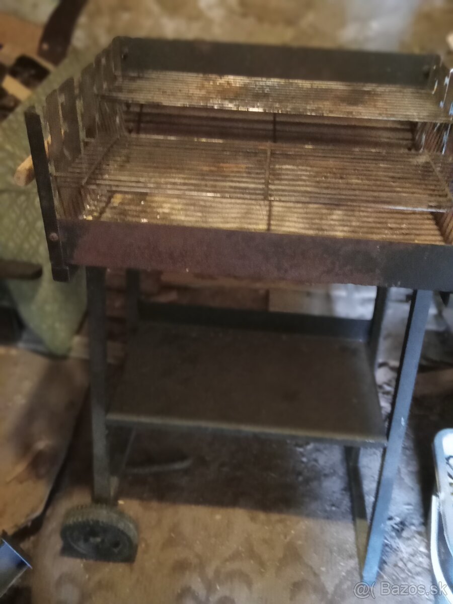 Predám funkčný party gril na kolieskach s dvoma varnymi plochami a odkladacou policou. Gril ma dva grilovacie rošty rozmerov 54x20cm každy, pre rozne druhy pokrmov viete samostatne nastaviť vyšku grilovania každeho roštu. Celkova grilovacia plocha je 54x40cm.