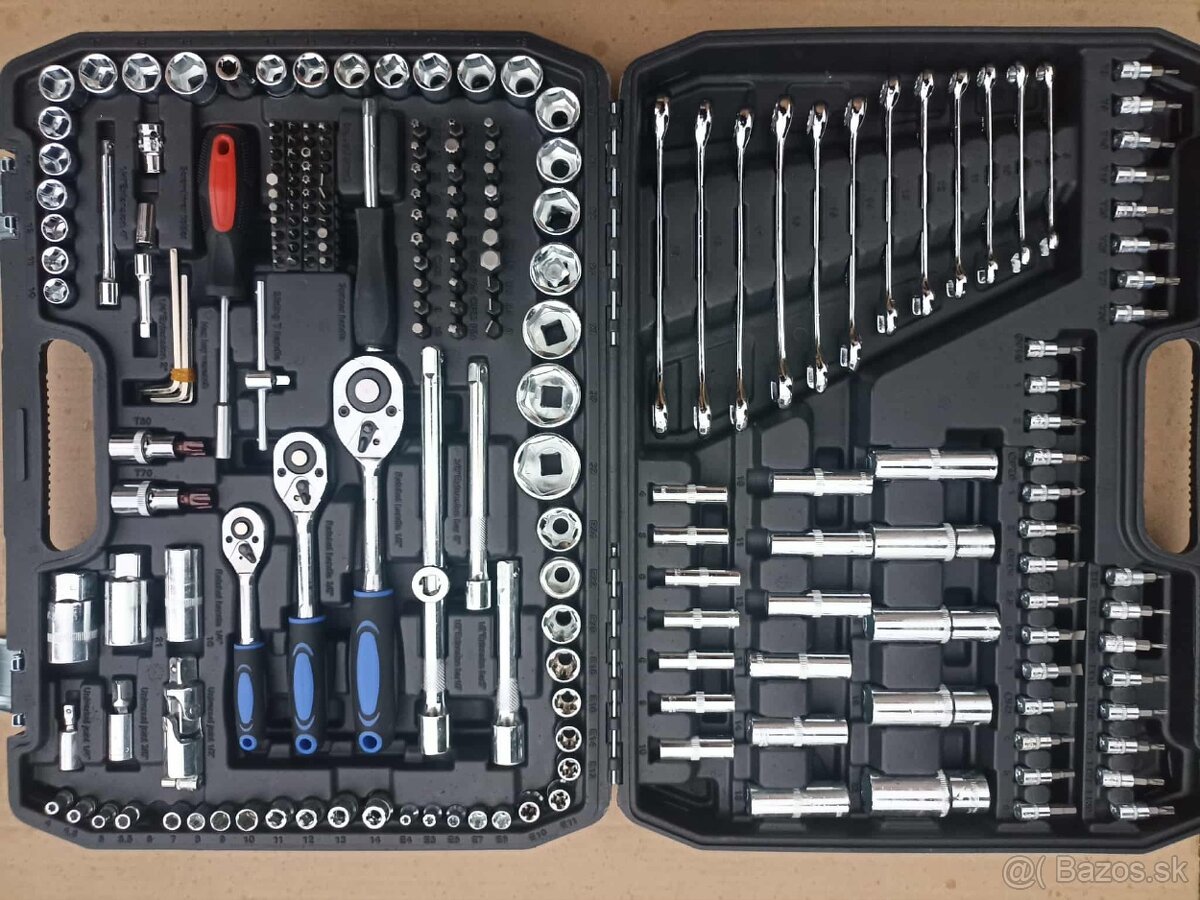 gola sada 216dielna očko vidlicove kluče nástrčkové kľúče nastrčené kľúče, nástrčkové kľúče 1/4, bity Torx imbus, skrutkovač 1/2 na nástrčkové orechy, adaptér 1/2, Račňa 1/2 a 1/4, predlžovací nadstavec, kĺbový adaptér