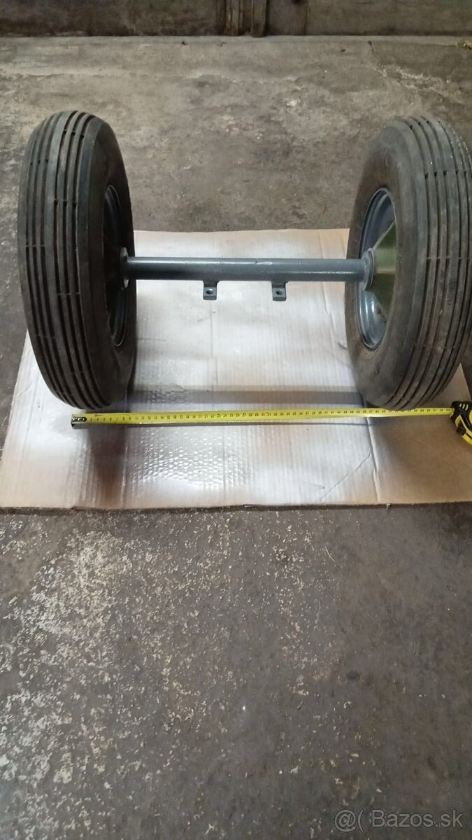 Predám nápravu, kolesá sú nafukovacie, má kvalitné náboje kolies.cena 40€.