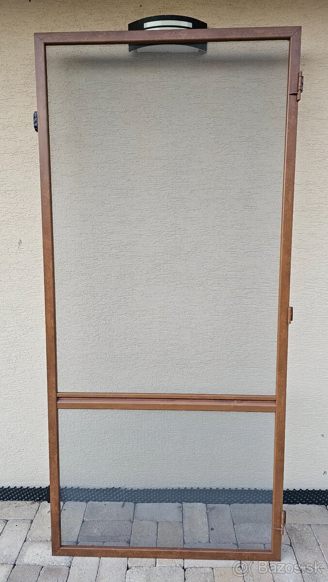 Predám sieťku na dvere s rozmermi 221cm x 102cm. Rám je hliníkový vo farbe zlatý dub, sieťka bola prednedávnom menená za novú. Sú na nej 3x pánty a 2x magnet.