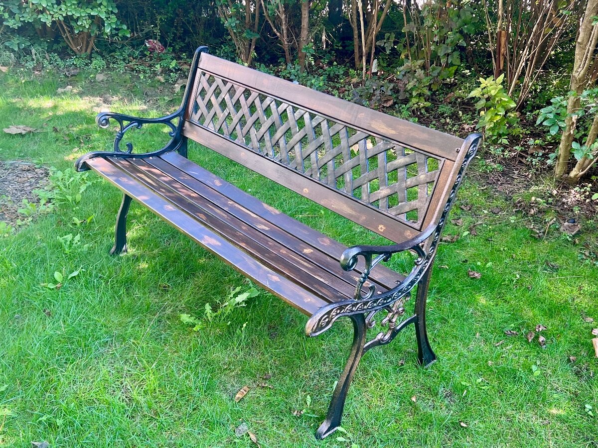 Kombinácia masívneho kovového rámu s dekoratívnymi detailmi a dreveného sedadla vytvára elegantný celok, ktorý pôsobí noblesne a zároveň útulne.