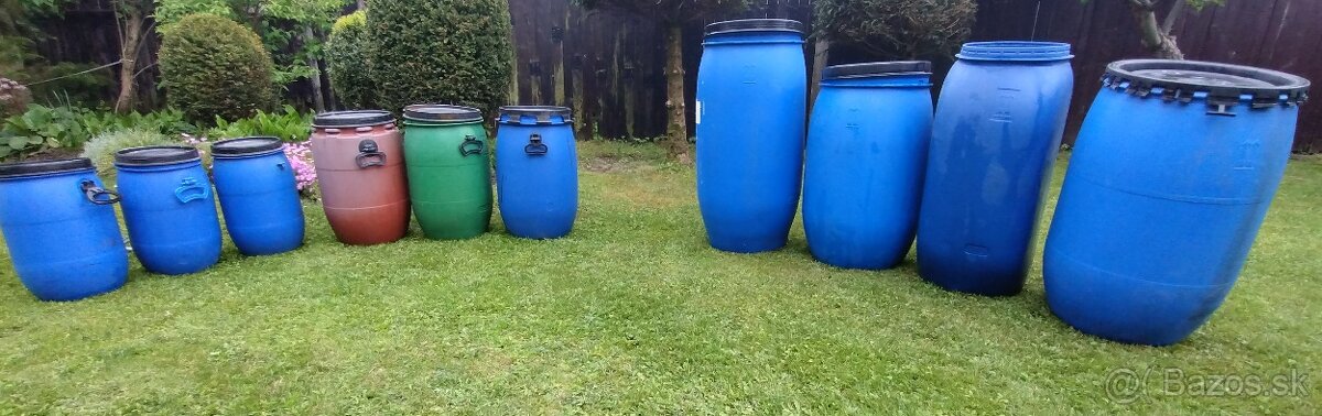 Predám plastové sudy rôznych velkostí. Sudy sú pouzité, vhodné na uskladnenie krmiva, materialu na stavbu, vody ci kvasu. Sudy majú vrchnáky. 3 ks sudov sú 30 litrové, 3 ks sú 60 litrové, 1 ks je 110 litrovy a jeden má 120 litrov. Cena : 18 euro za 30 l a 60 l, 110 a 120 l sudy su po 20 euro.