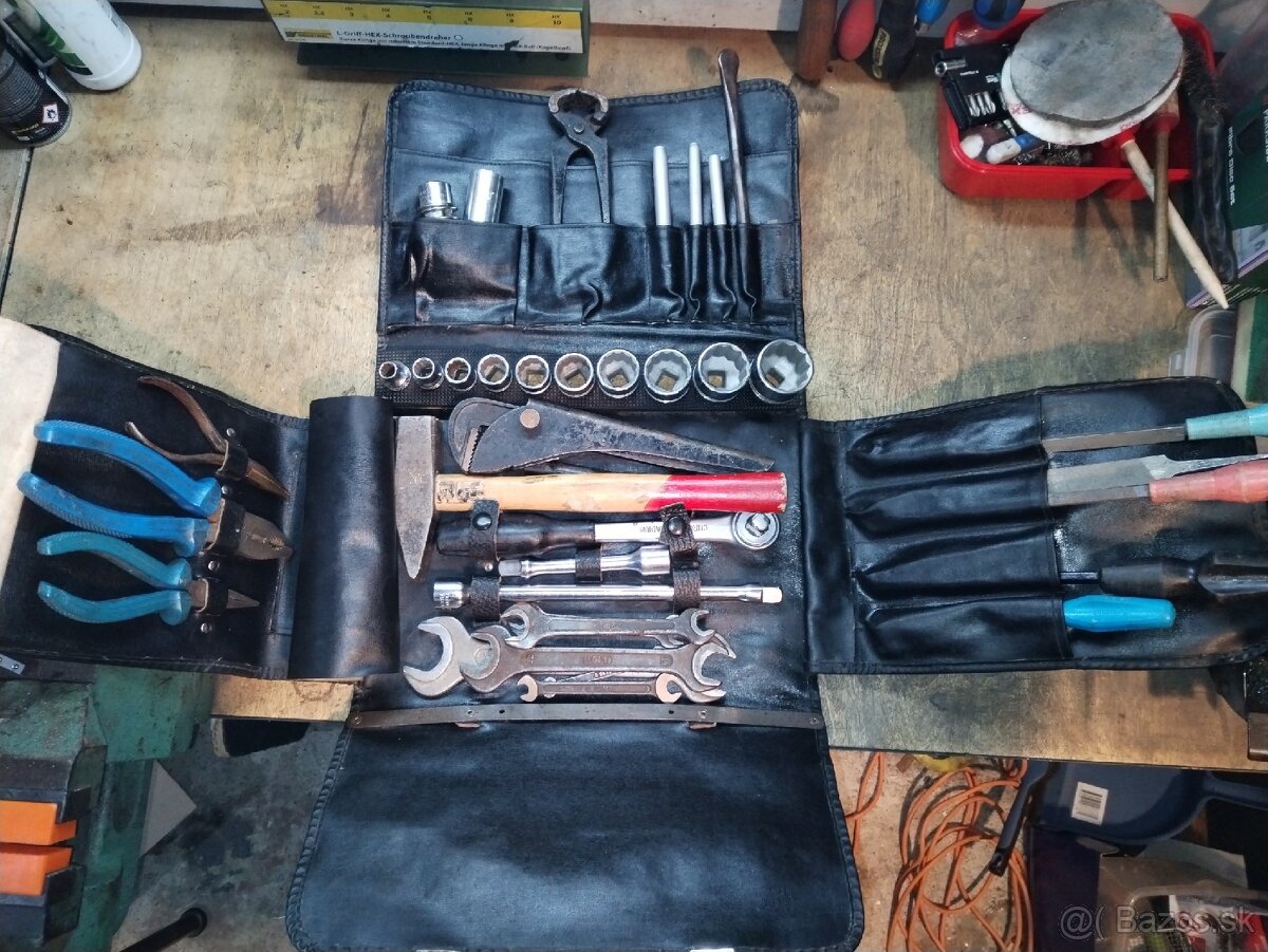 Tona autobrašna B12, Made in Českoslovakia. Obsah je : Tona gola sada, Zbirovia kliešte, kladivo, Tona vidlicové kľúče, Narex sekáč, Zbirovia hasak, Narex priebojnik, Narex srobovaky atd