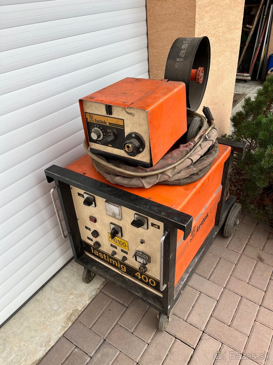 Predám staršiu veľkú továrenskú CO2 zváračku Lastek Lastimig 400, funkčná, možnosť vyskušať. K zváračke je podávač s 10m hadicou, horák, drôt, pár náhradných špičiek - komplet vybavenie, zváračka sa predáva bez fľaše a bez budíkov. Cena 400€.