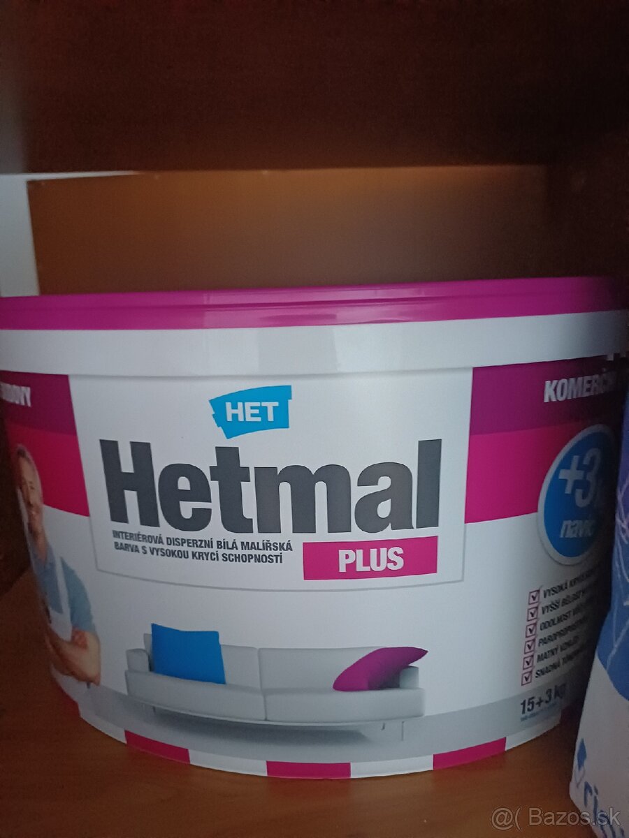 Predám hetmal farbu bielu 18kg, izolacnu farbu bielu 1kg pôvodná cena 24e, 3x sanitárny trasparentny silikon, 2x biely akryl, 1x mamut , 10m2 filc na zakrývanie, cca 40m2 papier na zakryvanie, 2x fólia na zakryvanie 4x5m tvrdá a 4x12,5 mäkká, Pásky a Štetec.. cena za vsetko 50e