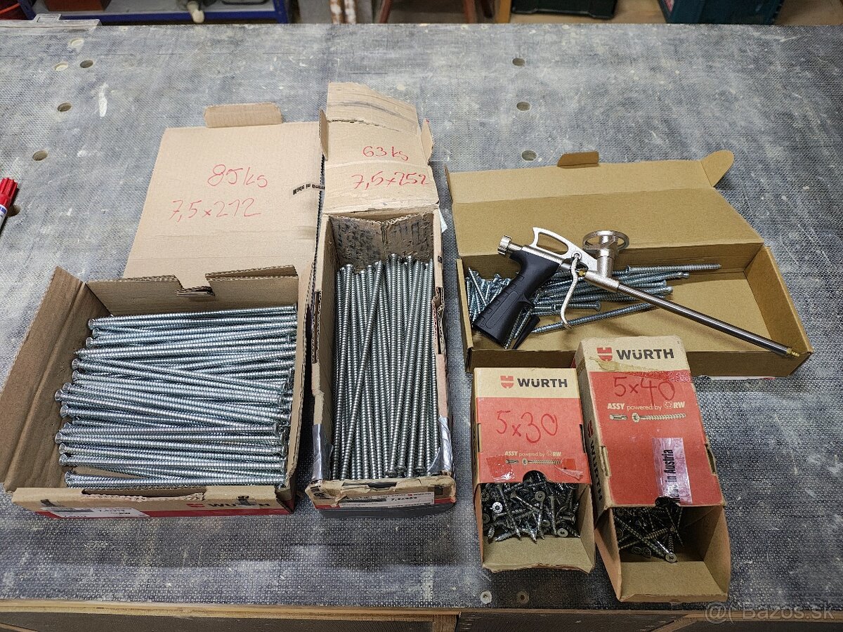 Turbo skrutky wurth + ďalší spojovací materiál + pištoľ na penu. Všetko spolu 40eur