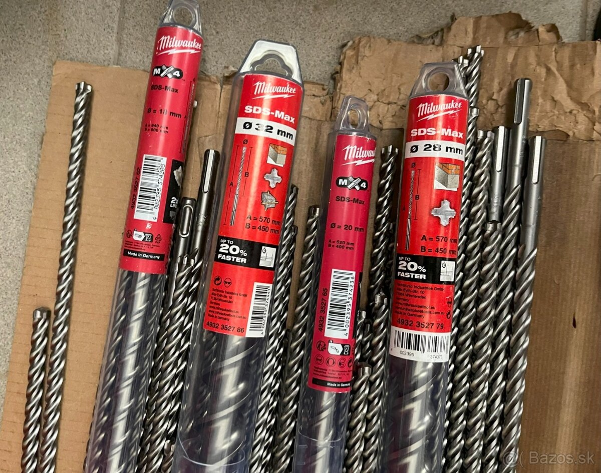 Predám tieto štvorbrité vrtáky do betónu od výrobcu Milwaukee.