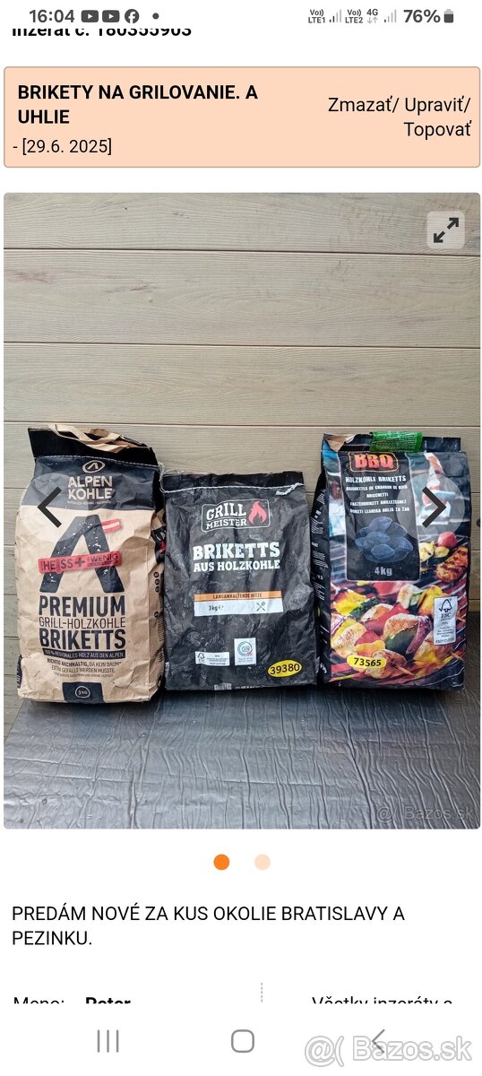 Označiť zlý inzerát Chybnú kategóriu Ohodnotiť užívateľa Zmazať/Upraviť/Topovať