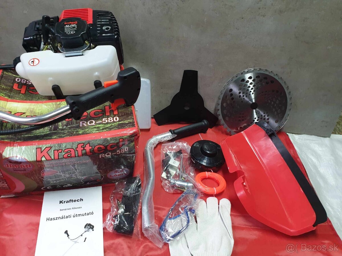 Výkonny vyžinač motorova kosa s prislušenstvom Strunová hlava, žaci kotúč, dvojitý popruh, okuliare, nadobka, trojzubec, nahradne lanko