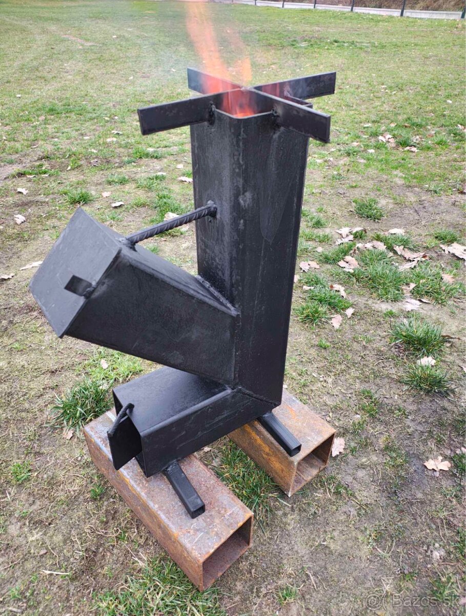 Predám masívnu raketovú pec vyrobenú z pevného oceľového profilu 120 × 120 × 6 mm