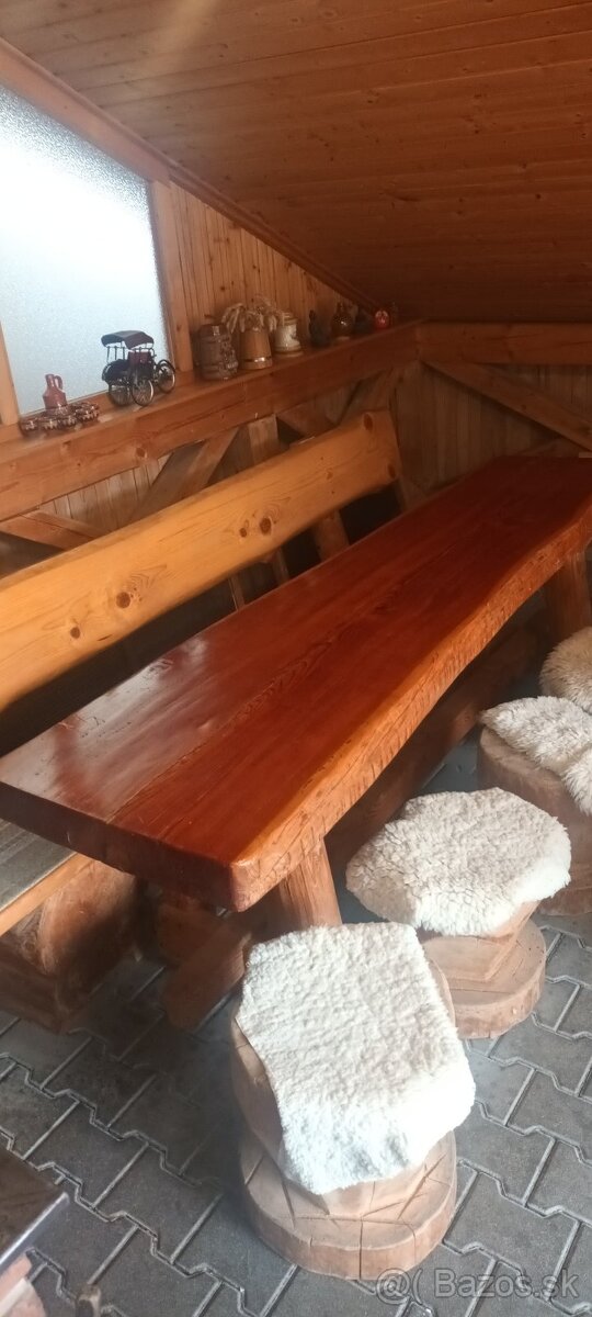 Predám masívny drevený stôl s jednou lavicou a taburetkami pre 10 osôb. Dĺžka 240cm, šírka 67cm, hrúbka stola 10,5cm z Červeného smreka.Vaha cca 200kg.PS.prosim expertov typu "dám vám 500€"NEVOLAŤ!!!!!