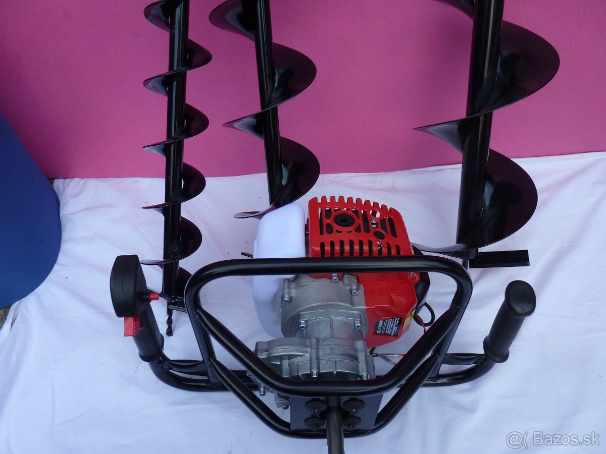 predam benzínový pôdny motorový vrták, jamkovač s prevodovkou a troma vrtákmi, motor dvojtakt