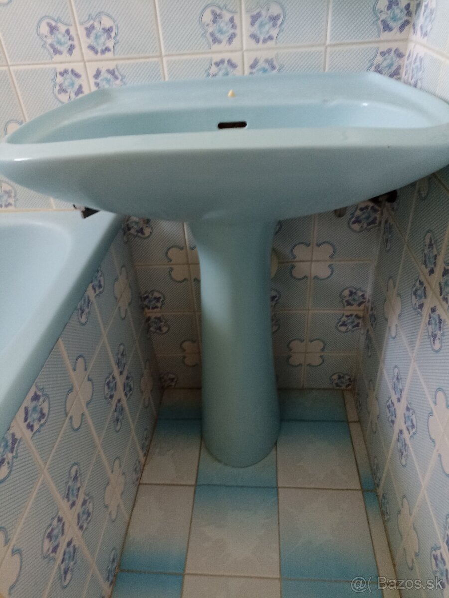 Predám Umývadlo s porcelánovou nohou do kúpeľne v modrom prevedení, v zachovalom stave.