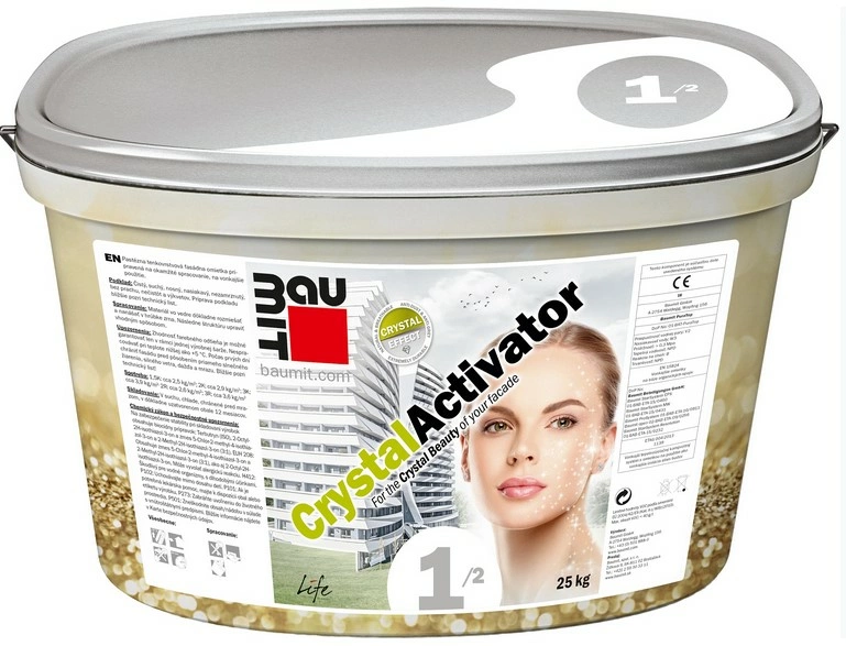 Príprava podkladu pred následnou aplikáciou fasádnej omietky Baumit CrystalTop. Aktivačný náter s vynikajúcou spracovateľnosťou nevyhnutný pre aktiváciu procesu zretia a správne fungovanie omietky pre dlhodobú ochranu fasády.