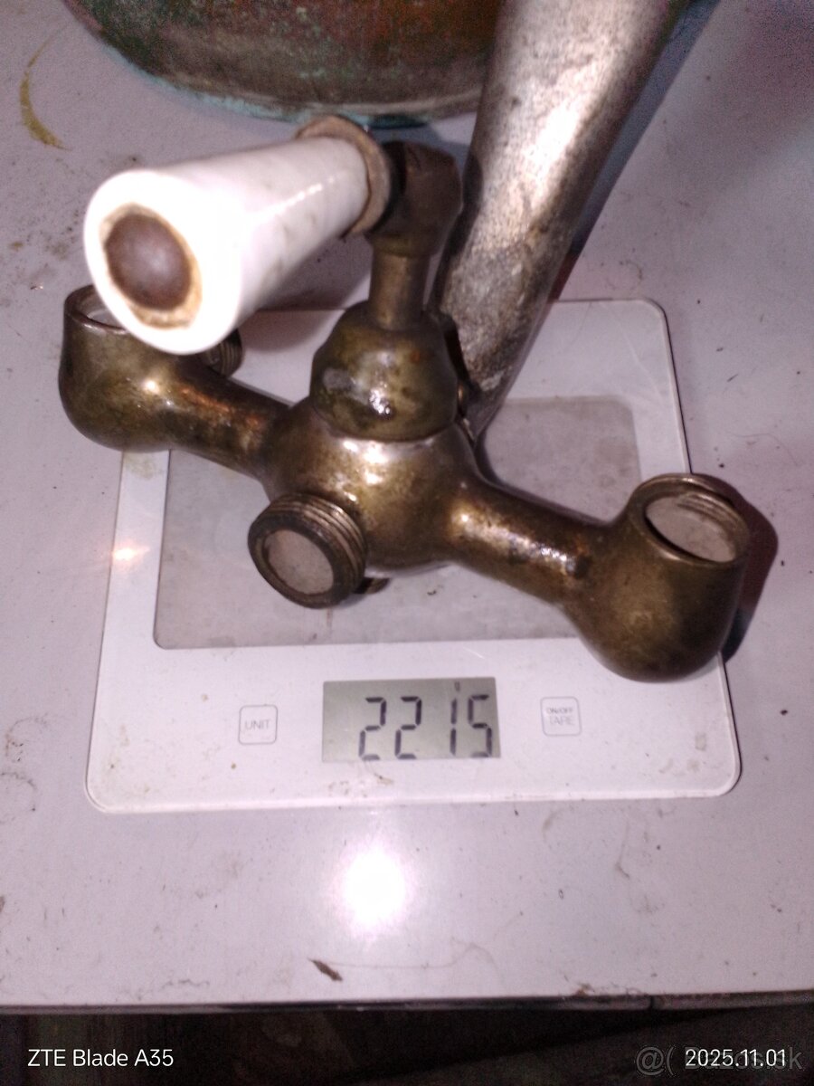 Dobrý deň predam starú Vaňovú retro batériu materiál mosadz alebo bronz váha 2215 gramov tak ako na fotografiách posledný obrázok ilustracny cena 50€ ďakujem.