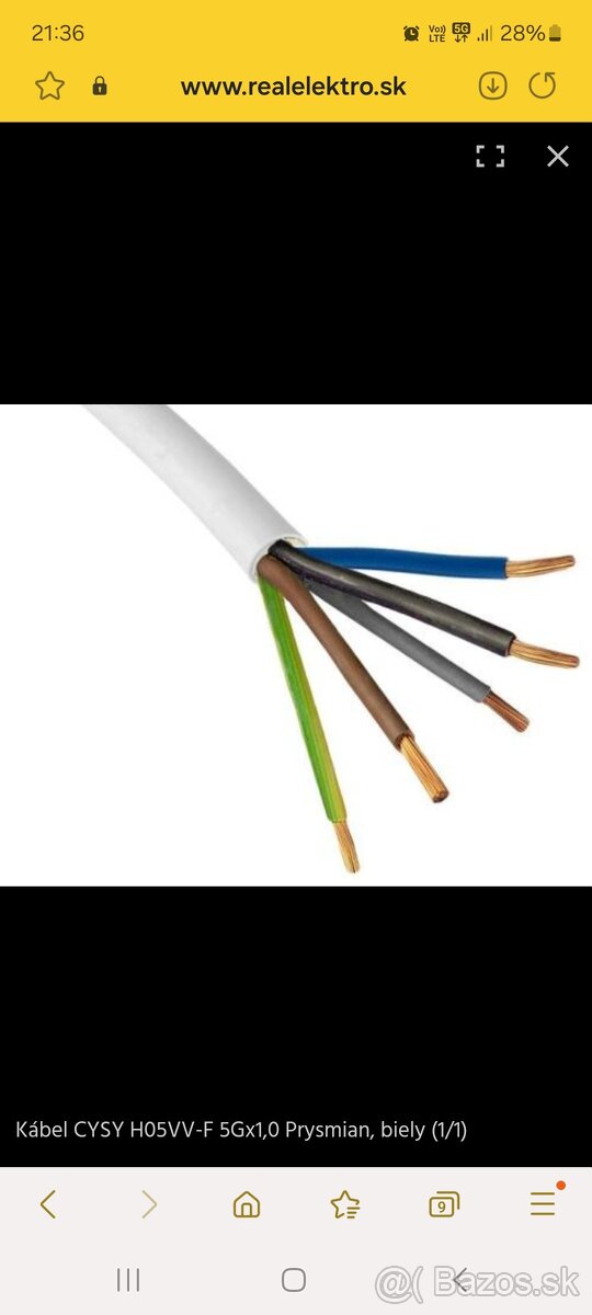 Predám nový nepoužitý flexibilný , šnúra, kábel cysy 5x1 biely H05VV-F 5G1 ,cena za 1M/0,90€