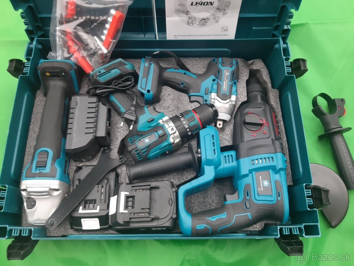 Aku akumulátorové baterkove náradie flexa uhlova brúska vŕtačka zbijacie kladivo skrutkovač priklepova vrtačka s baterkami a nabíjačkou