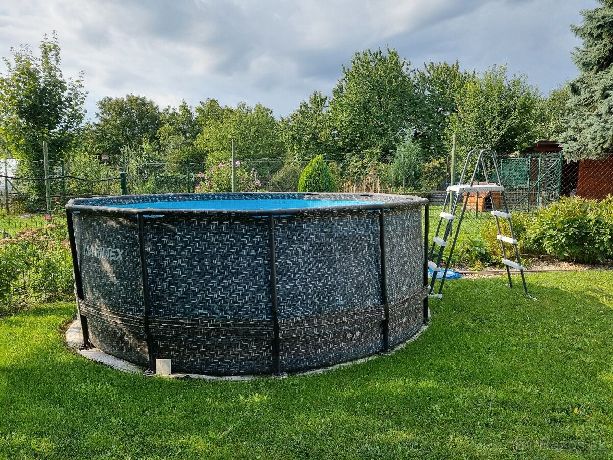 Predam pouzivany nadzemny bazen Marimex Florida 3,66x1,22 m vo vzhlade ratan so vsetkymi hadicami a priechodkami. K tomu pieskova filtracia Intex, schodiky do bazena a gratis pridam plavak na chlorove tablety a dve rozne sietky na cistenie vody. Vsetko plne funkcne. Osobny odber v Zalesi, okr. Senec.