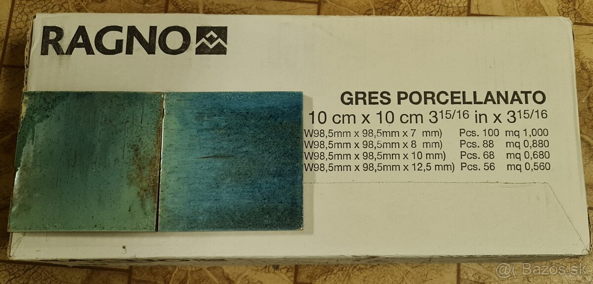 Predám obklad Gleeze Turchese, zn. Ragno, rozmer 10x10 cm, hrúbka 7mm, celá neotvorená krabica - 100ks = 1 m2. Každý kus je jedinečný, farba modro-zeleno-hnedá. Kúpili sme viac ako sme potrebovali. Na internete sú aj fotky obkladu ako vyzerá na stene. Osobný odber PK, BA.