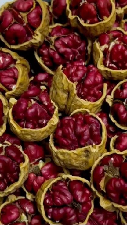 Vitamíny a minerály: Červené vlašské orechy sú plné esenciálnych živín, ako je železo, zinok, horčík, fosfor, meď a vitamíny skupiny B (B1, B2, B5, B6 a B9).