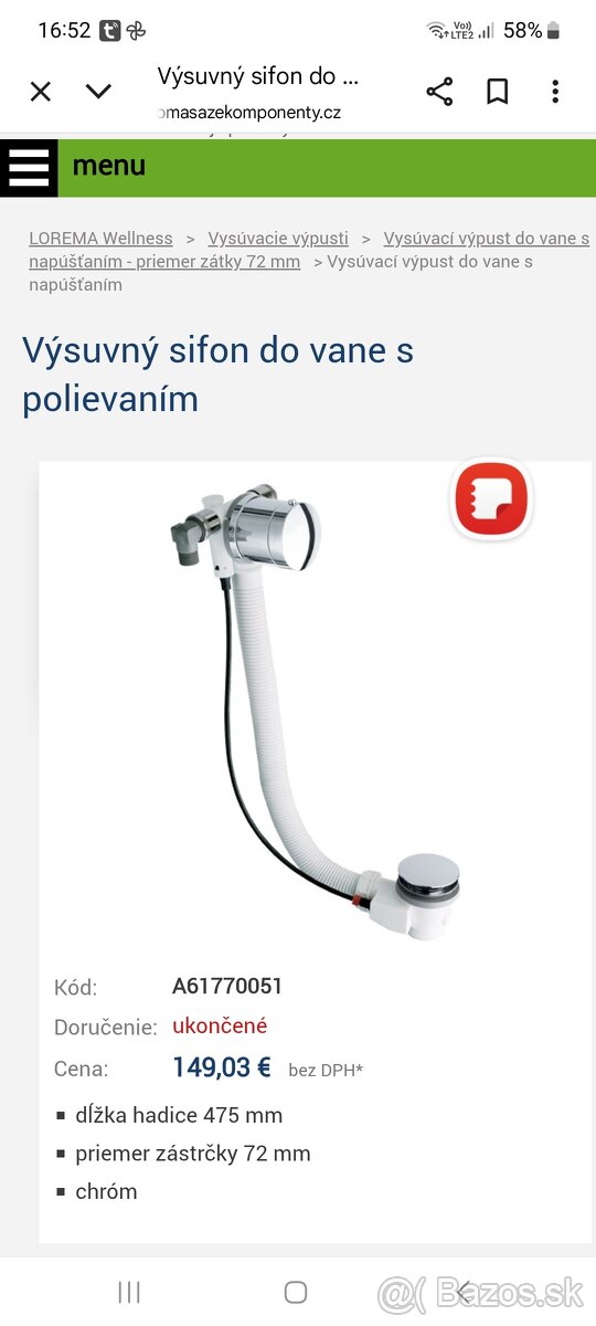 Predam sifon na vaňu aj s napuštaním vody a uzaverom..pôvodná cena 150eur,nové nepoužite