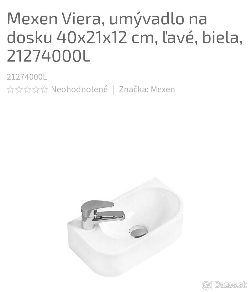 Ponúkam na predaj umývadlo Mexen Viera, nové, nepoužívané, ľavé prevedenie. Nesadlo na skrinku.