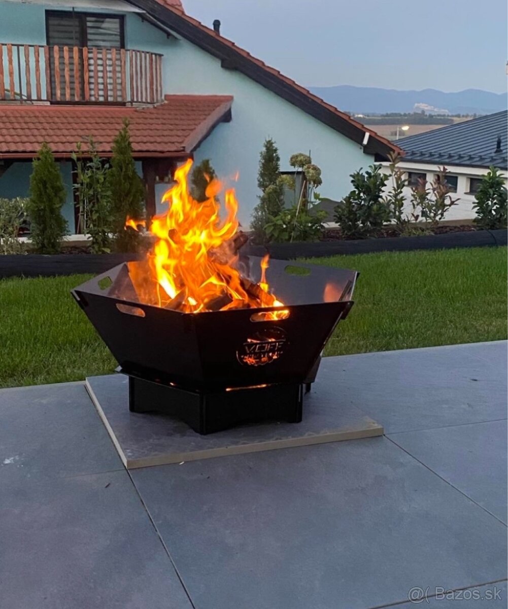 Predám prenosné ohnisko z hrúbky plechu 3mm. Rozkladací systém, aby ohnisko zabralo čo najmenej miesta, pri uskladnení na zimu.