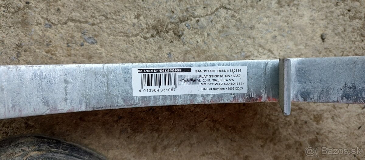 Predám zemniaca pásovinu nerez rozmer 30x3,5 MM o dĺžke 25m.