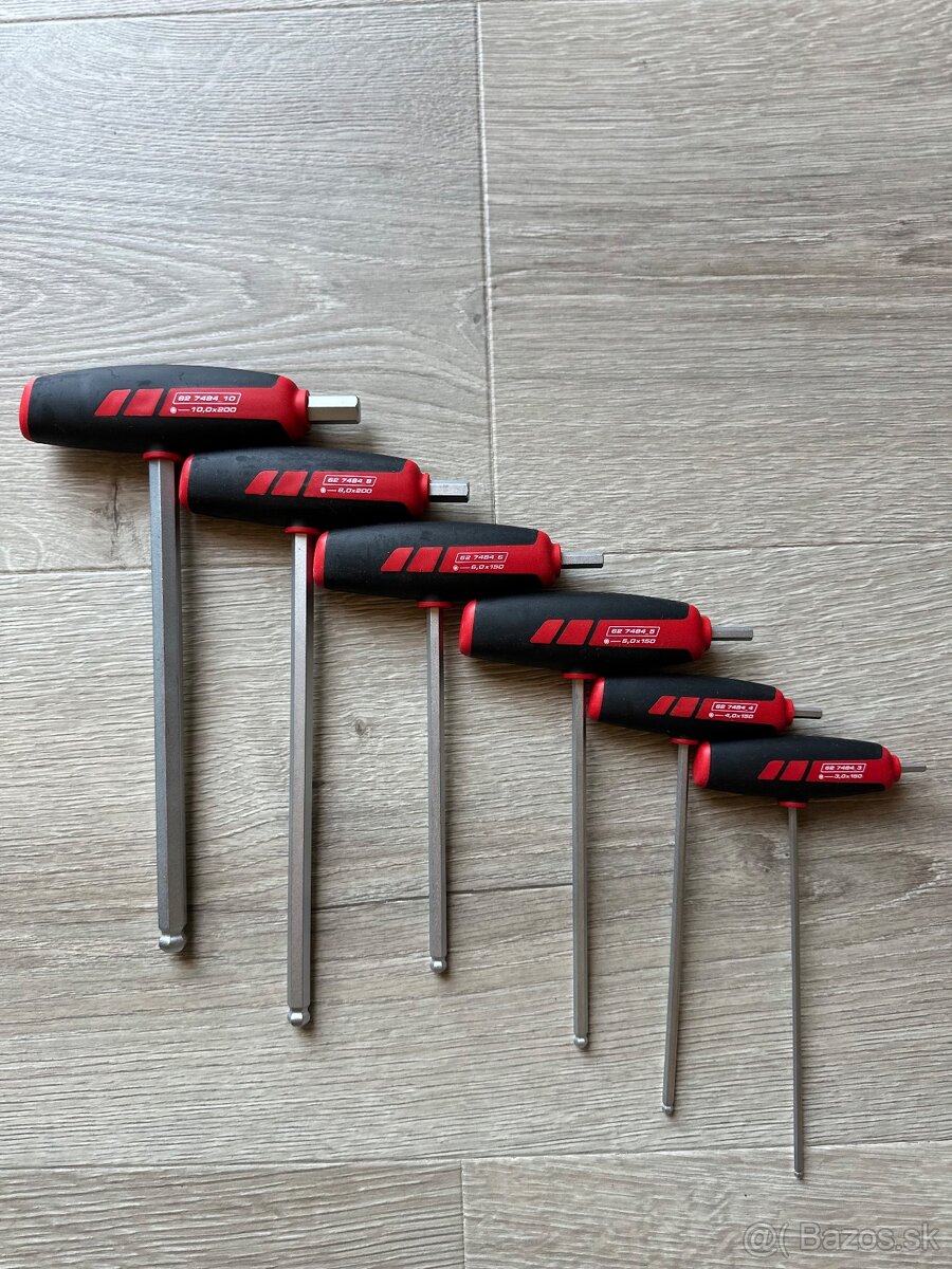 Ponúkam na predaj súpravu 6-hranných skrutkovačov s guľôčkovou pochromovanou hlavou nemeckej značky Holex.