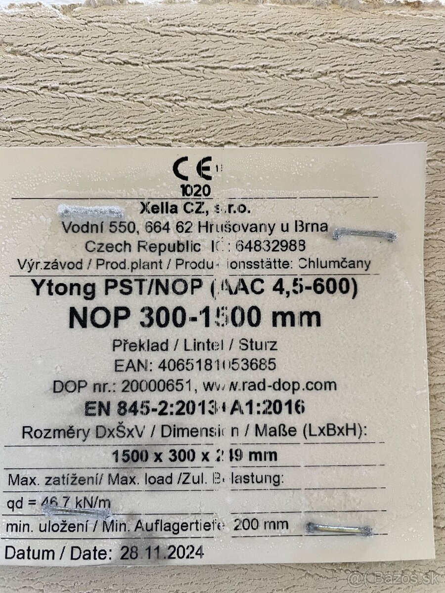 Dobrý deň , predám preklady YTONG a YTONG U PROFIL 6 pal.