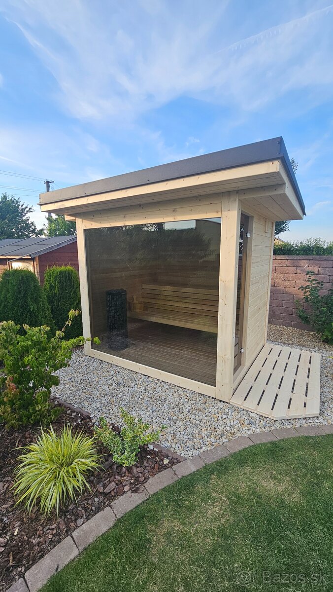 Exteriérová fínska sauna DARK - [26.1. 2026]Predám vonkajšiu fínsku saunu DARK s rozmermi 230 × 200 cm. Sauna je vhodná do záhrady alebo na terasu, pohodlná aj na ležanie. Spracovanie je poctivé, vyrobené na mieru a z kvalitných materiálov.
