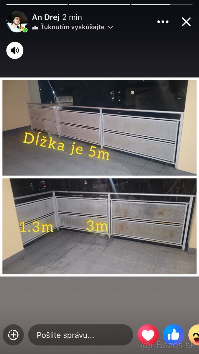 Predám pevné kovové zábradlie vhodné na balkón alebo terasu.