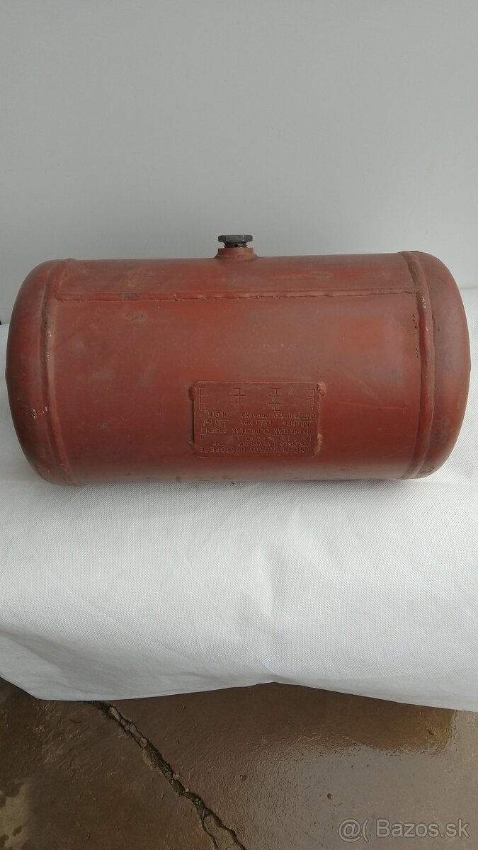 Predám nepouživanu tovarensku tlakovú nádobu,objem 12 litrov. Priemer nadoby je 208mm, najväčšia dĺžka 422mm.Na obidvoch koncoch je 1/2"závit.V strede je skrutka M22x1,5mm na odvzdušnovanie.