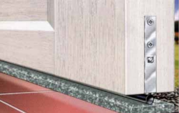 Lišta sa skladá z hliníka, utesňovací element sa skladá z dutého profilu zo silikónu. Pri uzatváraní dverí narazí uzatvárací čap do dvernej vidlice, v poslednom okamihu pritlačí smerom nadol vnútorný mechanizmus a vznikne perfektné utesnenie. Výstup výšky môže byť regulovaný pomocou nastavovacej skrutky. Obsluha na strane pántu je možná iba pri vstavaní, resp. na strane zámku len pri namontovaní. Balené v blistri vr. skrutiek a boč. úchytiek.