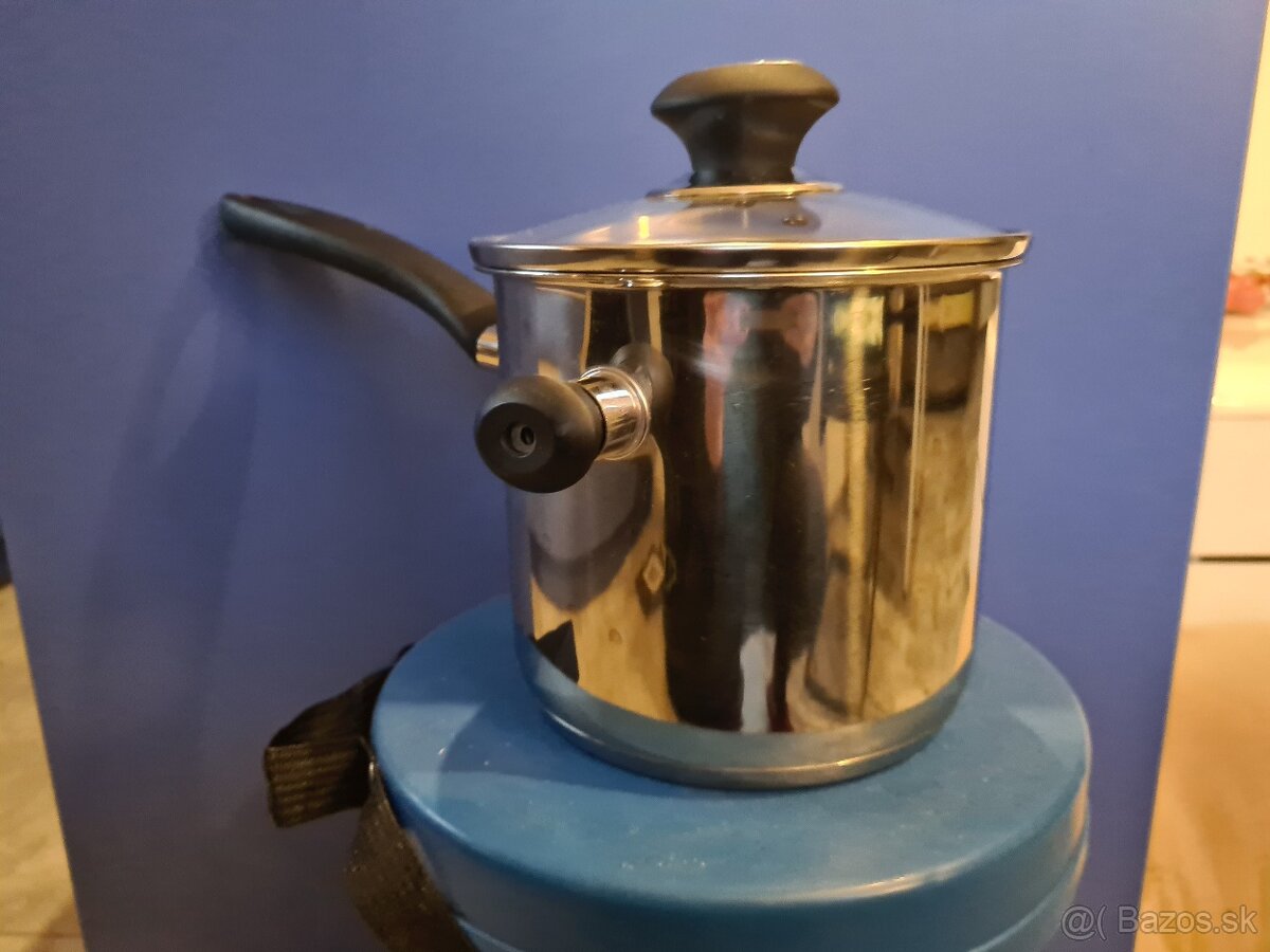 Dvojplášťový mliekovar z prvotriednej nehrdzavejúcej ocele s extra silným sendvičovým dnom je vynikajúci na ľahkú prípravu pokrmov vo vodnom kúpeli bez rizika pripaľovania. Je vybavený píšťaľkou, sklonerezovou pokrievkou s ergonomickou rukoväťou pre bezpečnú manipuláciu a maximálnu úsporu miesta pri skladovaní. Vhodný pre všetky typy sporákov - plynové, elektrické, sklokeramické a indukčné. Mliekovar ani píšťaľku neumývajte v umývačke.