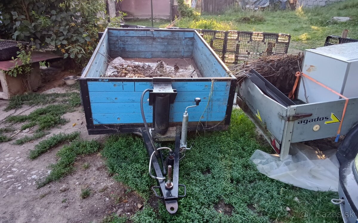 Vlečka vyklapacia - [23.1. 2026]Predám vlecku za malotraktor alebo štvorkolku ,pevná náprava kolesá z desty rozmer 120x180 možnosť napojiť na hydraoliku traktora alebo dám knej aj ručnú pumpu