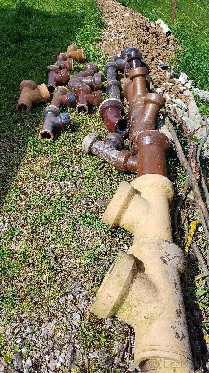 Predám odpadové kameninové tvarovky a rury rozmerov 100 125 200 (trubky, rura na kameninu, odbočka, sifón t-kus, ypsilon)