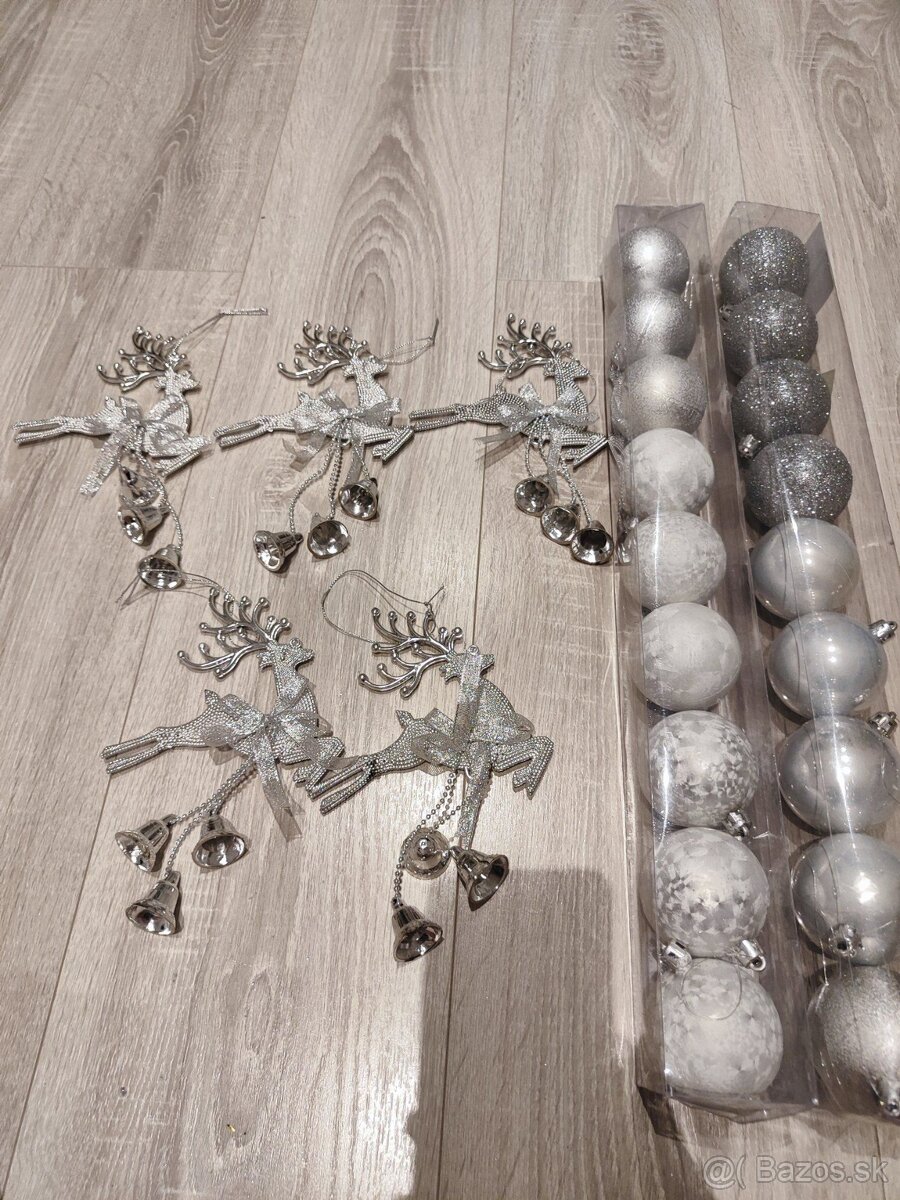 1.foto strieborné soby 5ks + strieborné gule spolu 10€