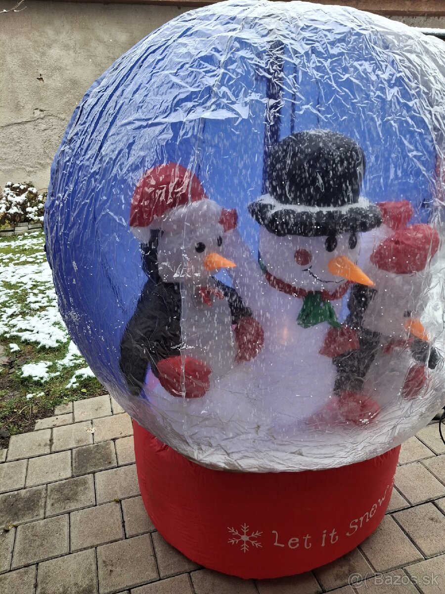 Nafukovacia ozdoba, vo vnutri pada sneh a svieti.