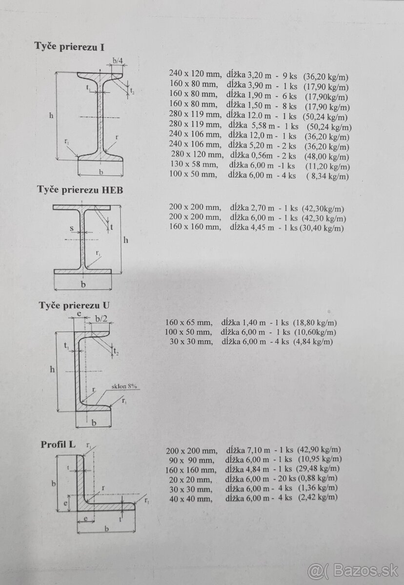 Predám rôzne oceľové rúry,nosníky,tyče tvaru : H ,L ,U ,I .Sú v rôznych rozmeroch podľa priloženej prílohy - obrázok č1.č2. oceľové platne hr 40 mm a rôzne plechy Cena nosníkov,platní plechov a rúr je 1 eur /kg .
