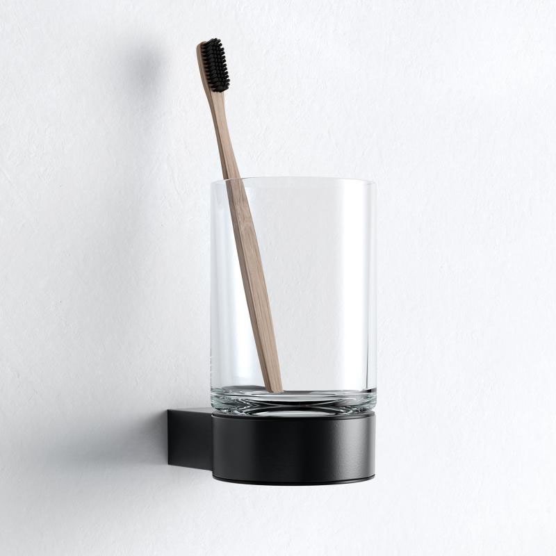 Keuco PLAN držiak - komplet s pohárom z kryštalového skla, farba čierna matná