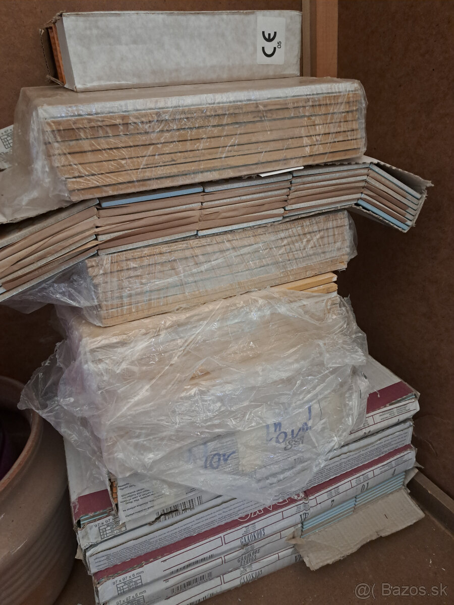 Prodám modré obklady asi 7 balíků a obklad/dlažba barva do oranžova asi 5 balíků a jeden balík listel. Bylo určeno na jednu koupelnu. Bohužel z rekonstrukce sešlo. Odběr pouze osobní v Dolnom Kubíně.